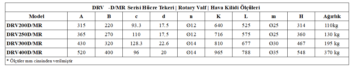 Denge Proses – Hücre Tekeri / Rotary Valf / Hava Kilidi Ölçüleri
